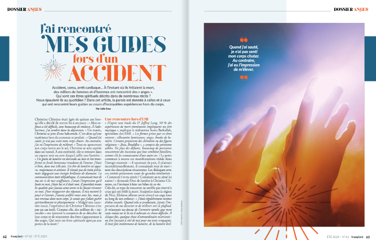 « Accident, coma, arrêt cardiaque… à l’instant où ils frôlaient la mort, des milliers d’hommes et de femmes ont rencontré des « anges ». Qui sont ces êtres spirituels décrits dans de nombreux récits ? Nous épaulent-ils au quotidien ? Dans cet article, la parole est donnée à celles et à ceux qui ont rencontré leurs guides auLire la suite « Inexploré : rencontrer ses guides en sortie hors du corps »